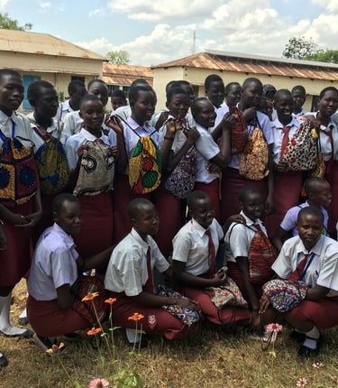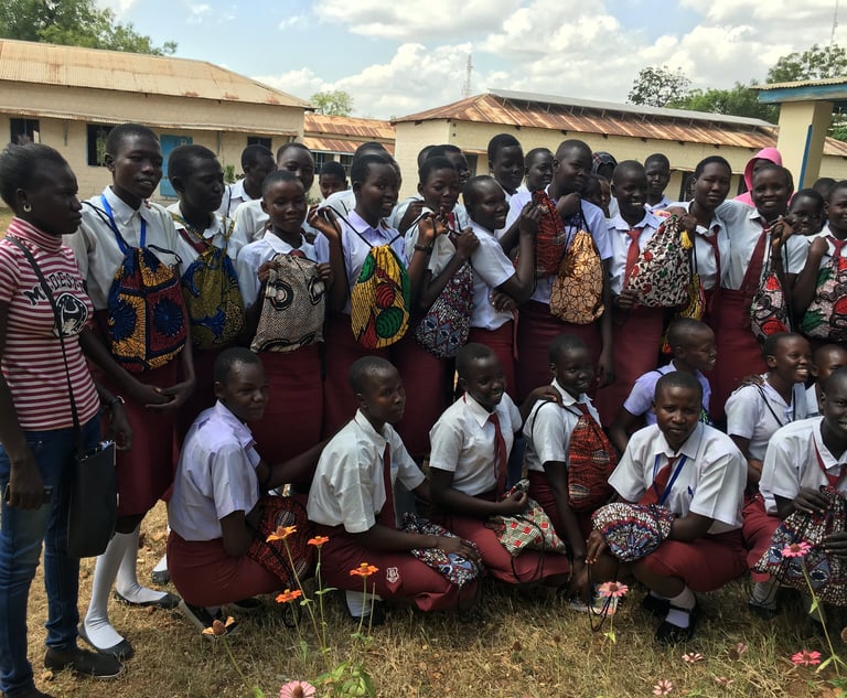 Students at Juba Girls Secondary School receive their resusable sanitary kits